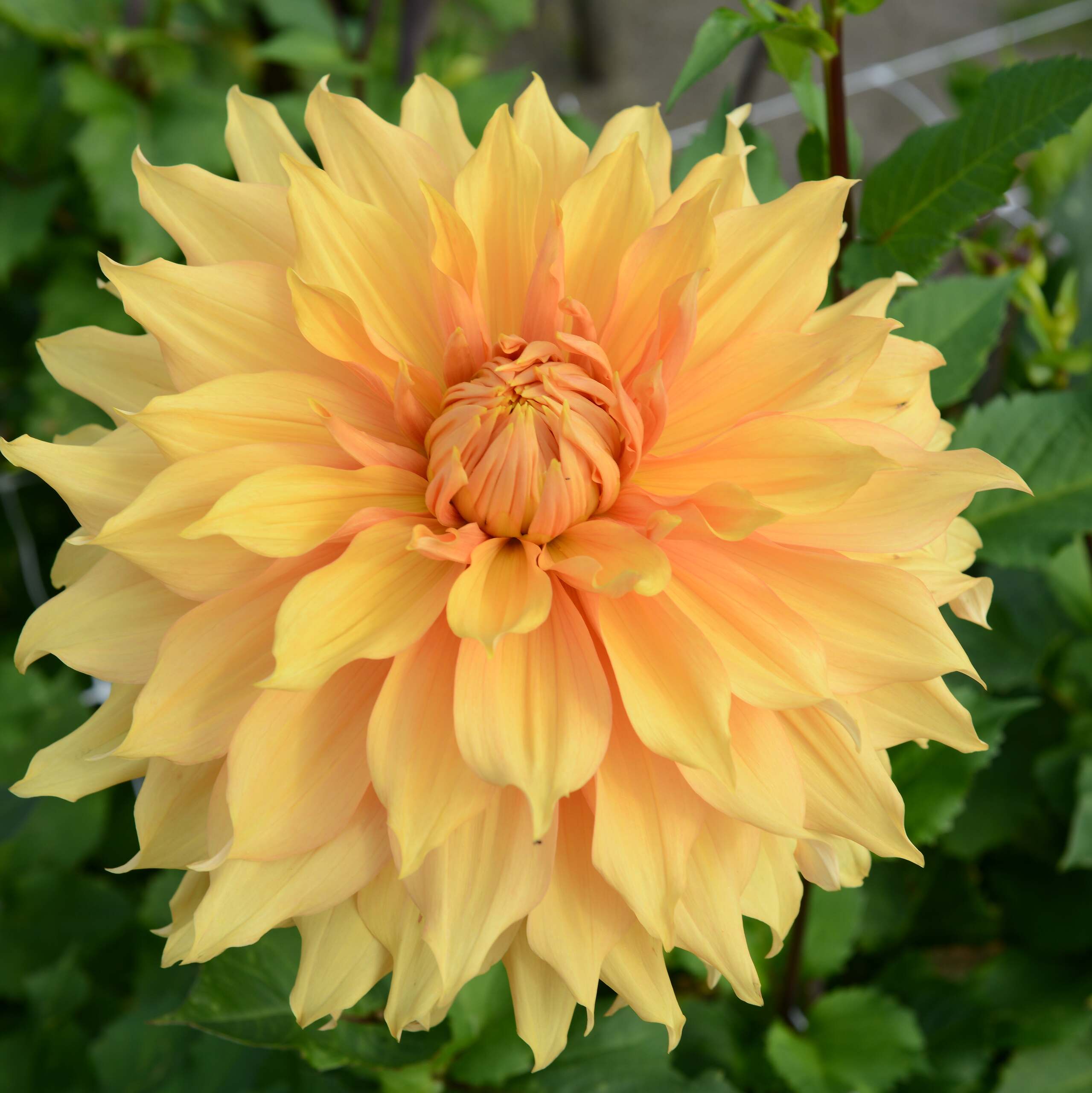 Varma toner i gyllene ljust orange med inslag av rosa, brons och korall. En underbar dahlia med stora blommor och en högväxande buske som blir riktigt imponerade fram på sensommaren. ’Hamari Guld’ bör planteras i bakkant av rabatten för att inte täcka mer lågväxande sorter.