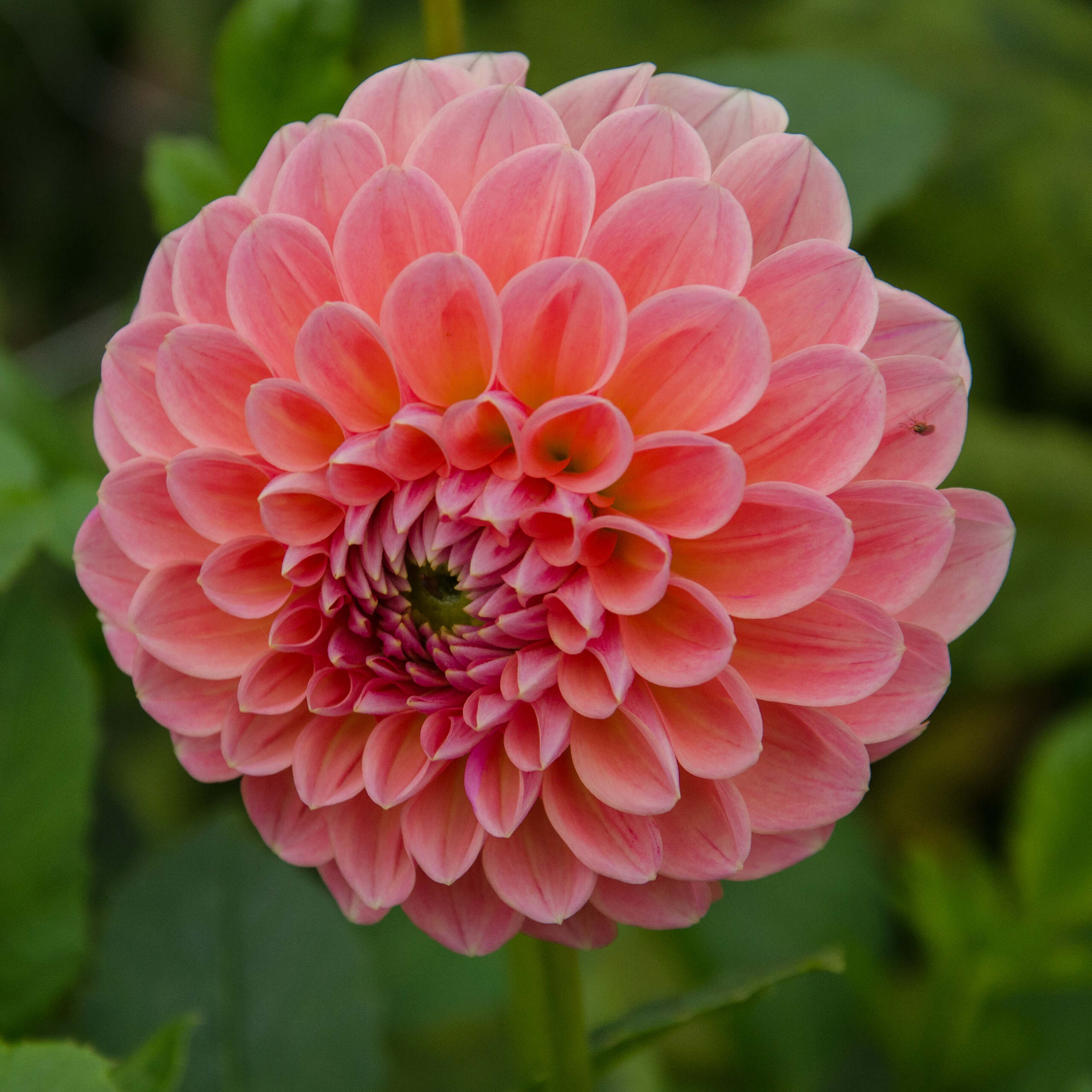 En bolldahlia med karamelligt rosa färg som ger rabatten både ett lekfull och romantiskt skimmer. En fröjd för ögat både i rabatten och i buketten.