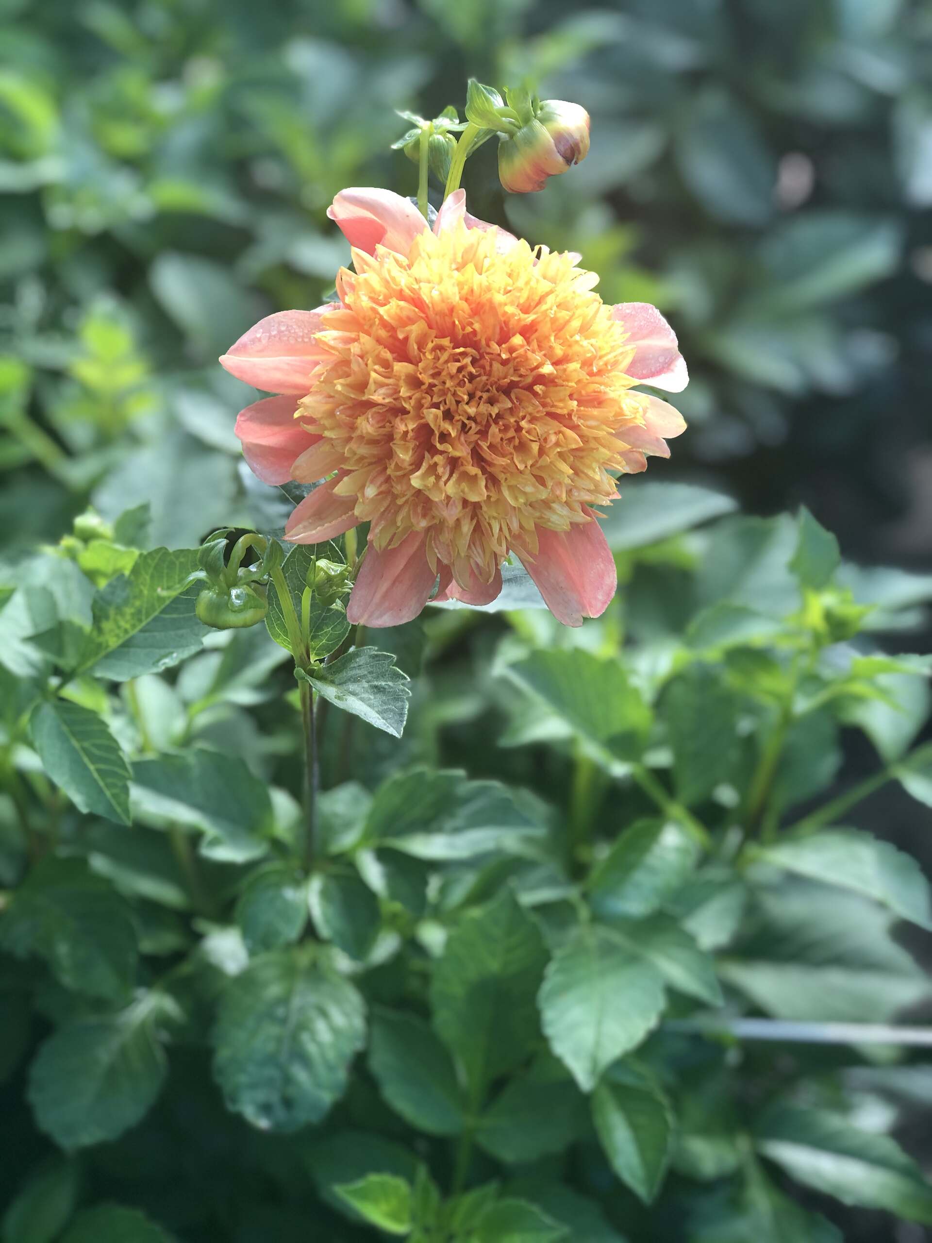 Mjukt orange kronblad med inslag av korallrosa som går över i en krämgul lite rufsig mitt. En dahlia som tåler att synas själv och lyser upp arrangemang och buketter. Ska inte förväxlas med pionen med samma namn.