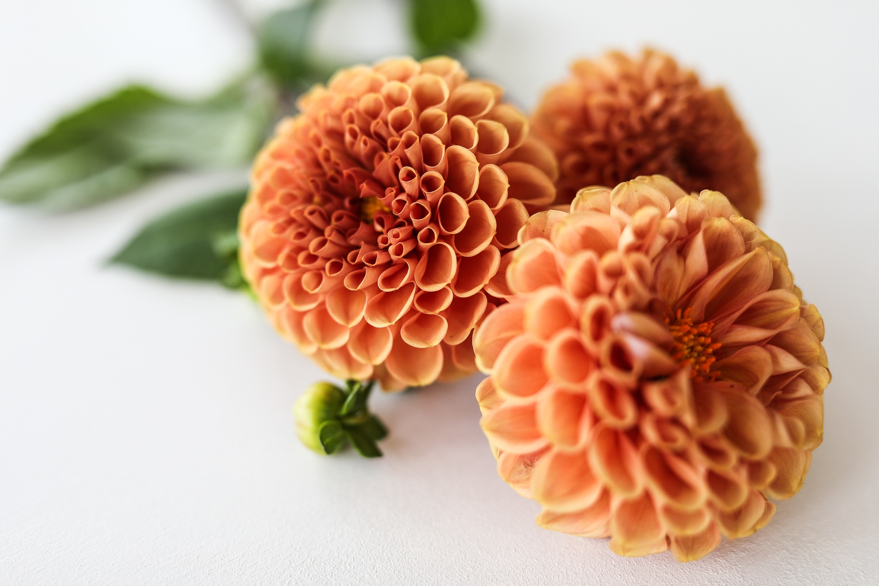 Skörda dahliorna på morgon eller tidig kväll. Använd en vass sax eller kniv och stoppa stjälkarna i vatten direkt. Välj ut de blommor som är halvöppna till ¾ öppna. Klipp av blommor precis ovanför en förgrening. Låt blommorna dra vatten under minst några timmar, helst över natten innan du arrangerar din bukett eller blomsterarrangemang. Dahlior håller 5-7 dagar i buketter inomhus.