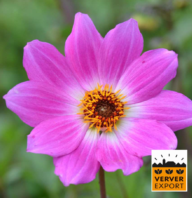 En enkel blomma med gyllenemitt och kronblad som skiftar i läckert lilarosa och vitt. Tack vare sin öppna blomma så älskas ’Zulu’ av pollinatörer så som fjärilar, bin och humlor. ’Zulu’ är en ny dahliasort som är framtagen för att passa ekologisk odling och vi på Larsviken är mycket stolta över att kunna erbjuda ekologiska dahlia-knölar.