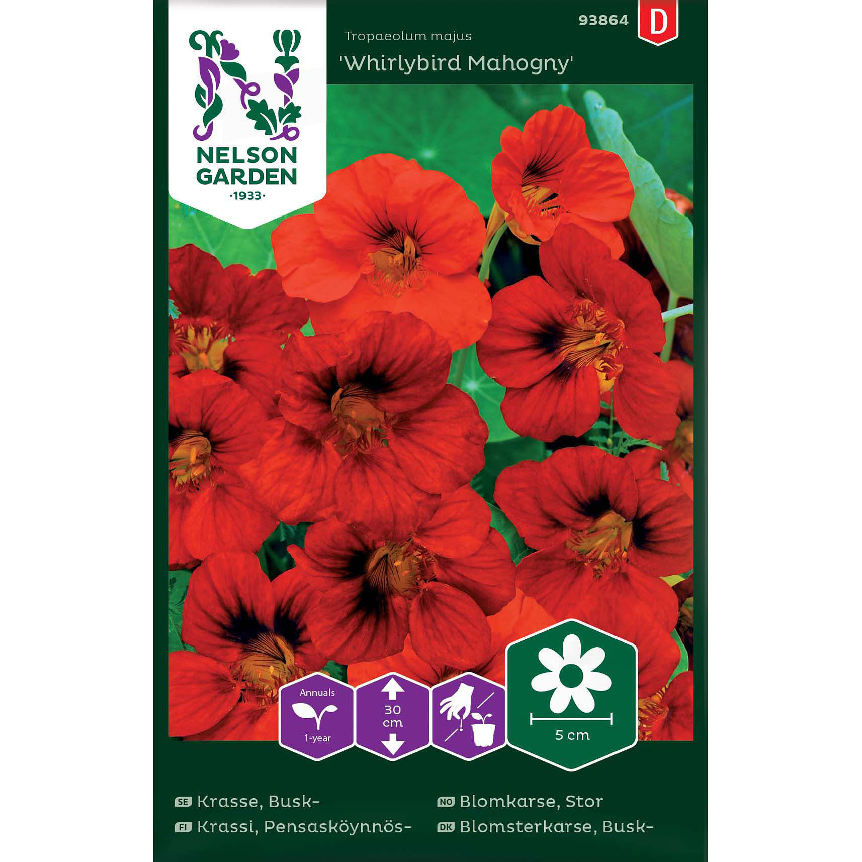 Halvfyllda, propellerliknande rödbruna blommor på låga, buskiga plantor. Fin i rabatter och krukor. Blommorna är ätliga och dekorativa i sallader. Blommar bäst i mager, väldränerad jord. I alltför näringsrik jord utvecklas bladen på blommornas bekostnad. Fräsch färgklick i trädgården eller på altanen. Blötlägg fröna ett dygn i ljummet vatten före sådd.