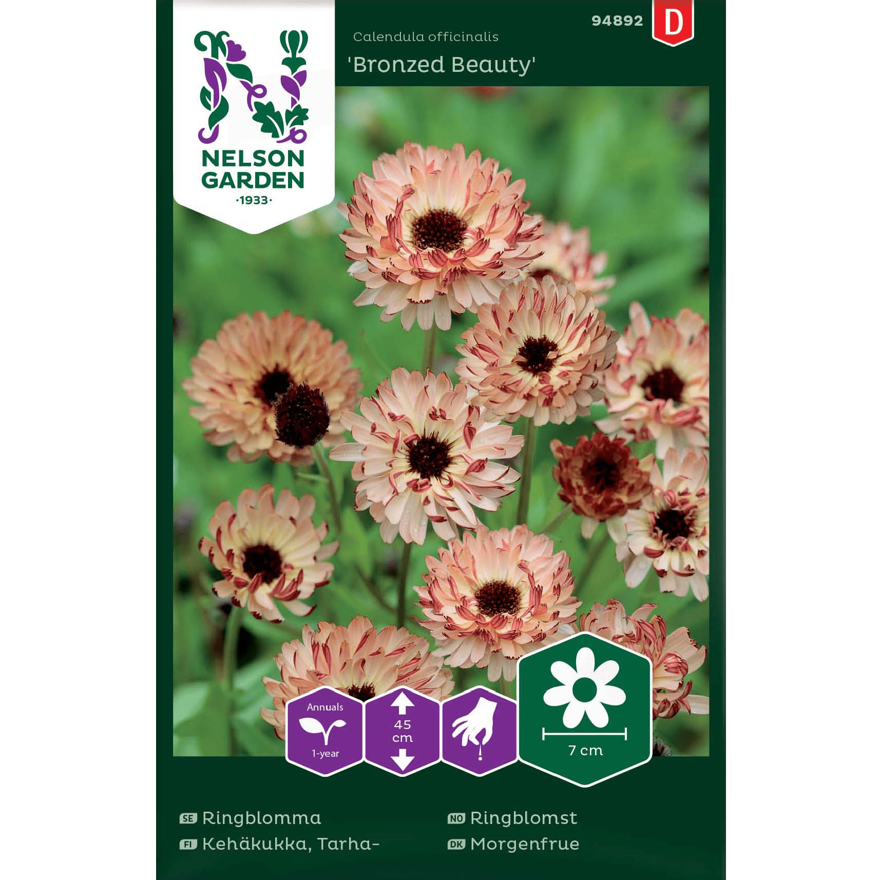 Lättodlad, rikblommande ringblomma med speciell färg. Vacker att odla i rabatt och grönsaksland. Fin till snitt. Frösår sig gärna om blommorna får vissna och fröna får sitta kvar. Kronbladen är ätliga och dekorativa i sallader, drinkar mm. Trivs bäst i näringsrik, väldränerad jord. Fin snittblomma. Frösår sig villigt. Plantan kan brukas ner som gröngödsling på hösten.