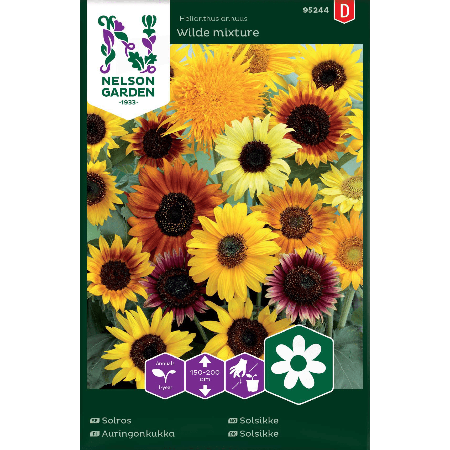En härlig solrosblandning i olika höjder och färger. Kan användas som avskärmning, planteras mot husvägg eller mur. Härliga i rabatt och praktfulla till snitt. Plantorna behöver stöd. Spara frösställningarna till småfåglarna. Trivs bäst i en näringsrik jord men är anspråkslös.