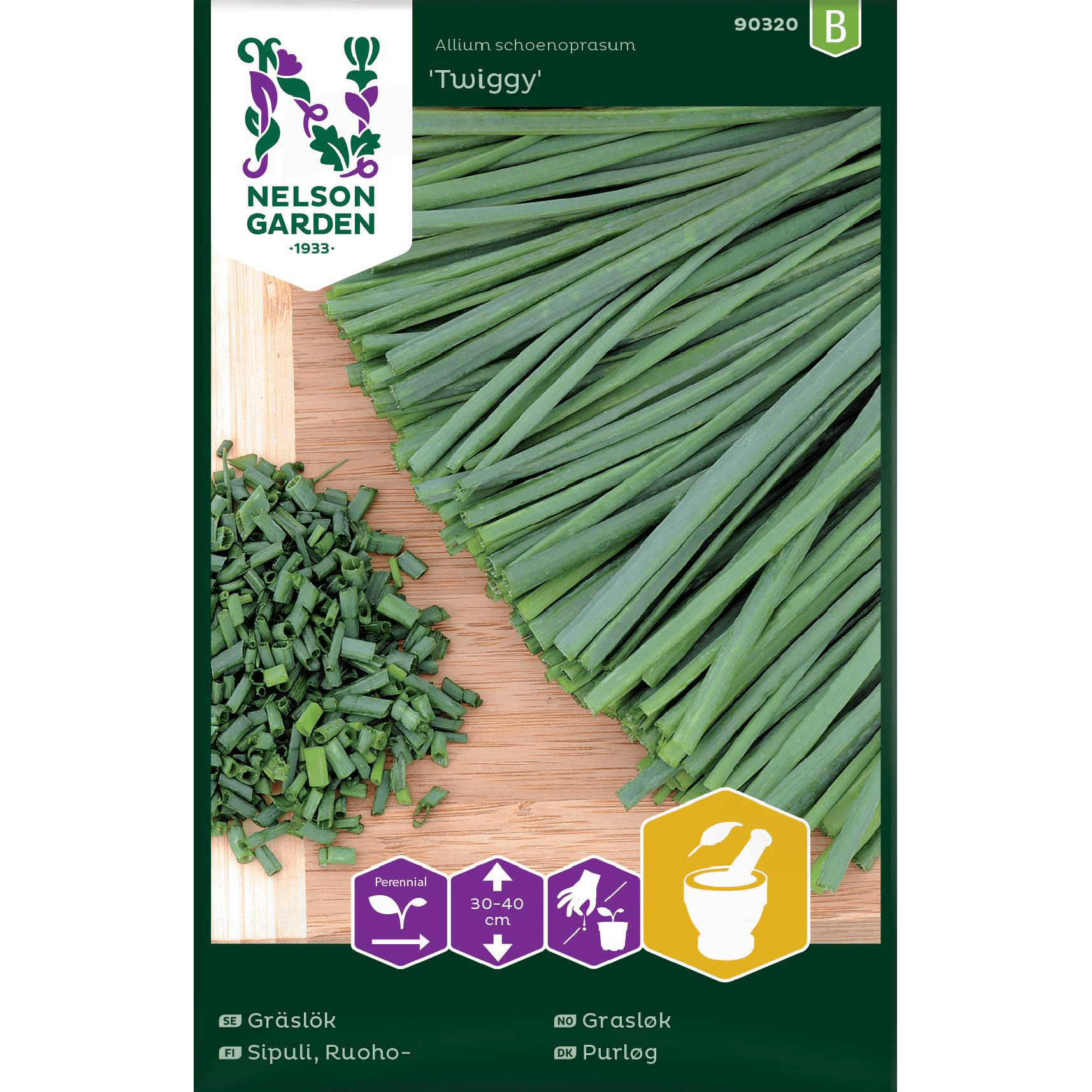 Lättodlad, flerårig kryddväxt. Sorten ger smala blad med mycket fin arom och mild löksmak. Bladen används färska i sallader, till sill, äggrätter, färskpotatis mm. De kan också frysas för vinteranvändning. Låt inte plantan blomma, det tar bara kraft från övrig tillväxt. Sådd i oktober kan ge tidigare groning på våren. Trivs på mullrik kalkhaltig jord, gärna lerjord, men anspråkslös.