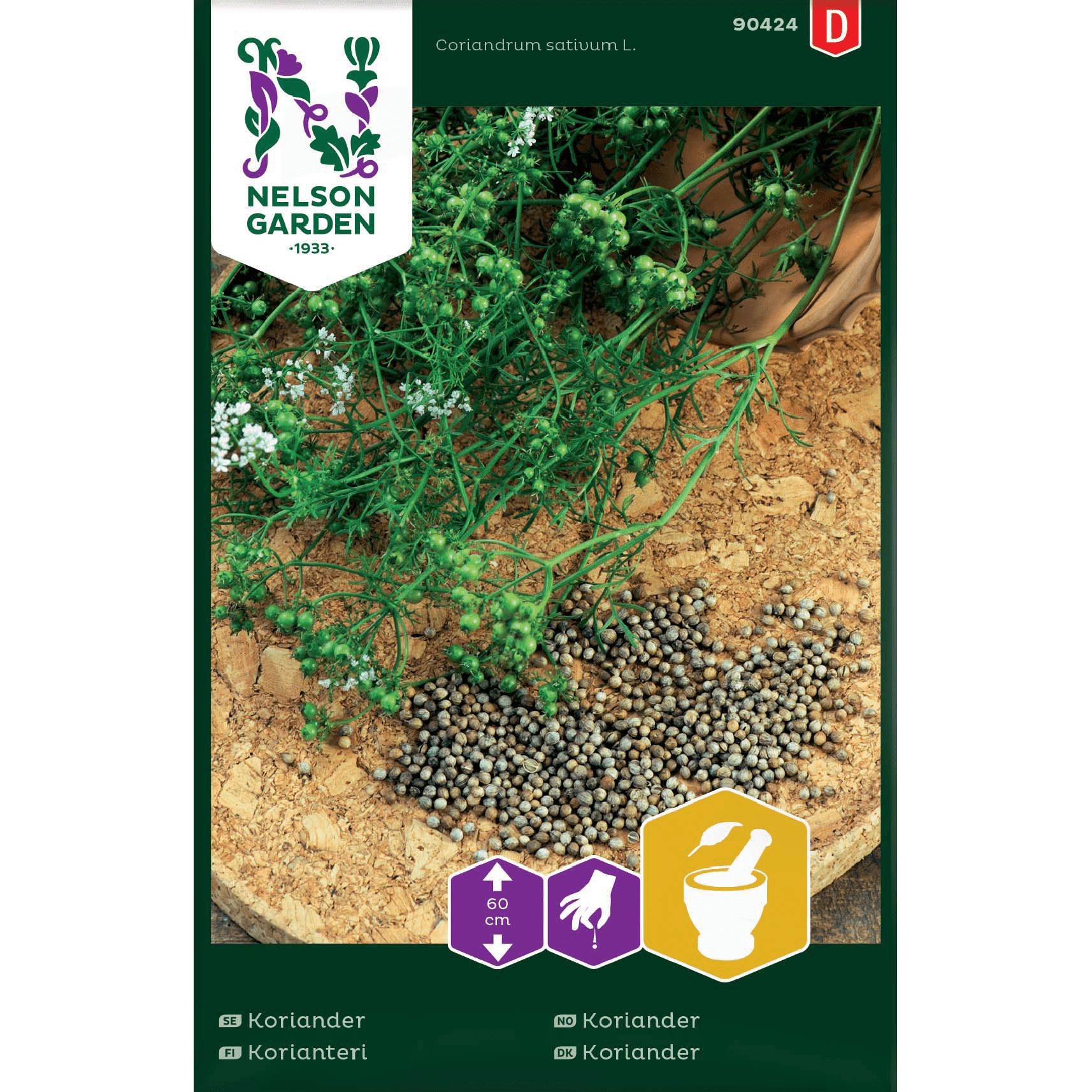 En orientalisk krydda som används i curry, indiska maträtter mm. Både blad och frön används. Upprepa gärna sådden med 2-3v mellanrum så har du tillgång till fräscha blad hela sommaren. Skörda färska blad efter hand. Fröna skördas strax innan mognad, hela växten klipps av, hängs upp och ner för att torka. Låter man plantan stå kvar faller fröna till marken och den självsår sig. Dekorativ växt, med svagt rosa blommor. Trivs på de flesta jordar men gärna torr och lätt jord, skyddad växtplats.