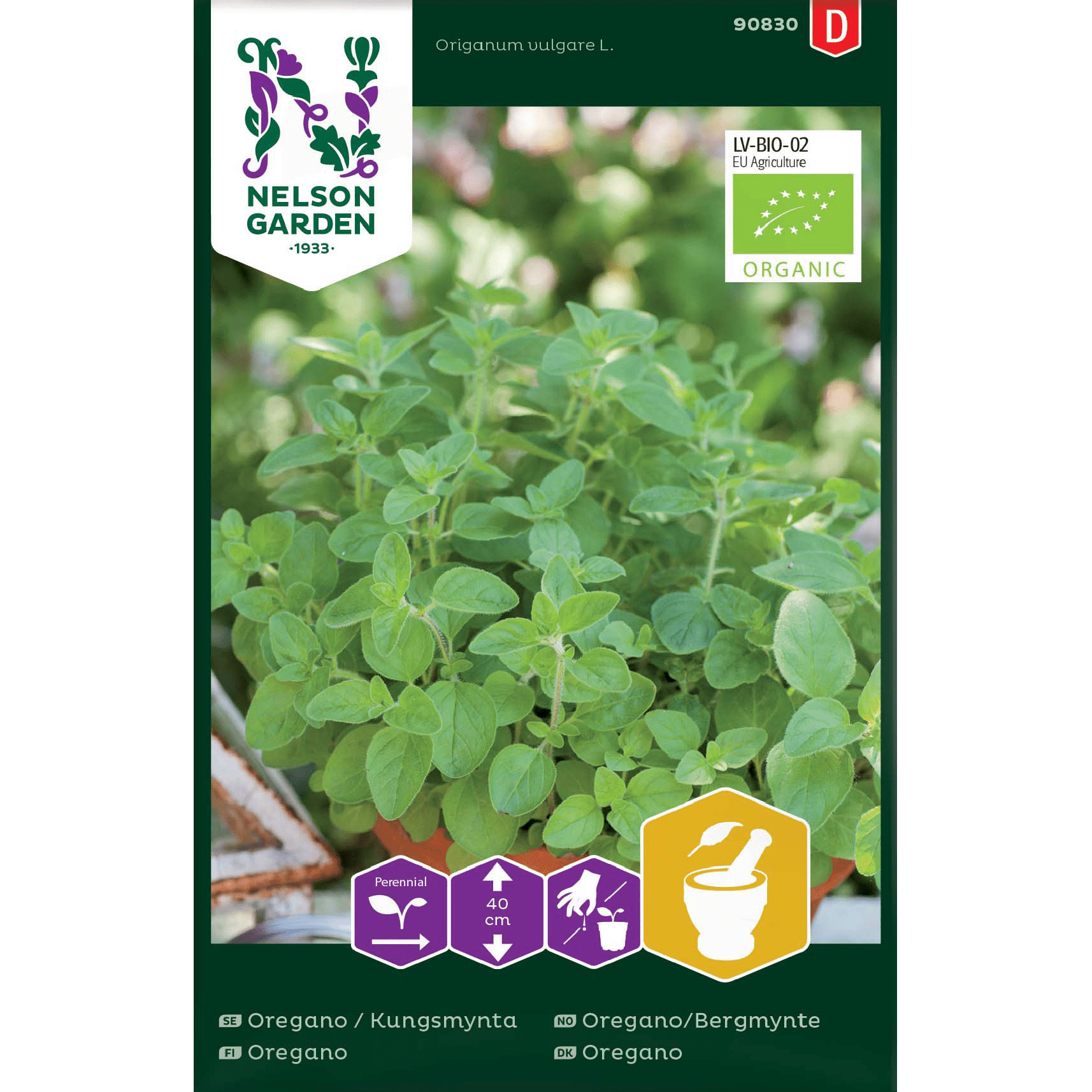 Ekologiskt frö. Oregano är en aromatisk kryddväxt som blommor med blå blommor. Skörda bladen efter hand och använd dem färska eller skörda hela kvistar för torkning. Ljuvlig krydda över tomater och fetaost.