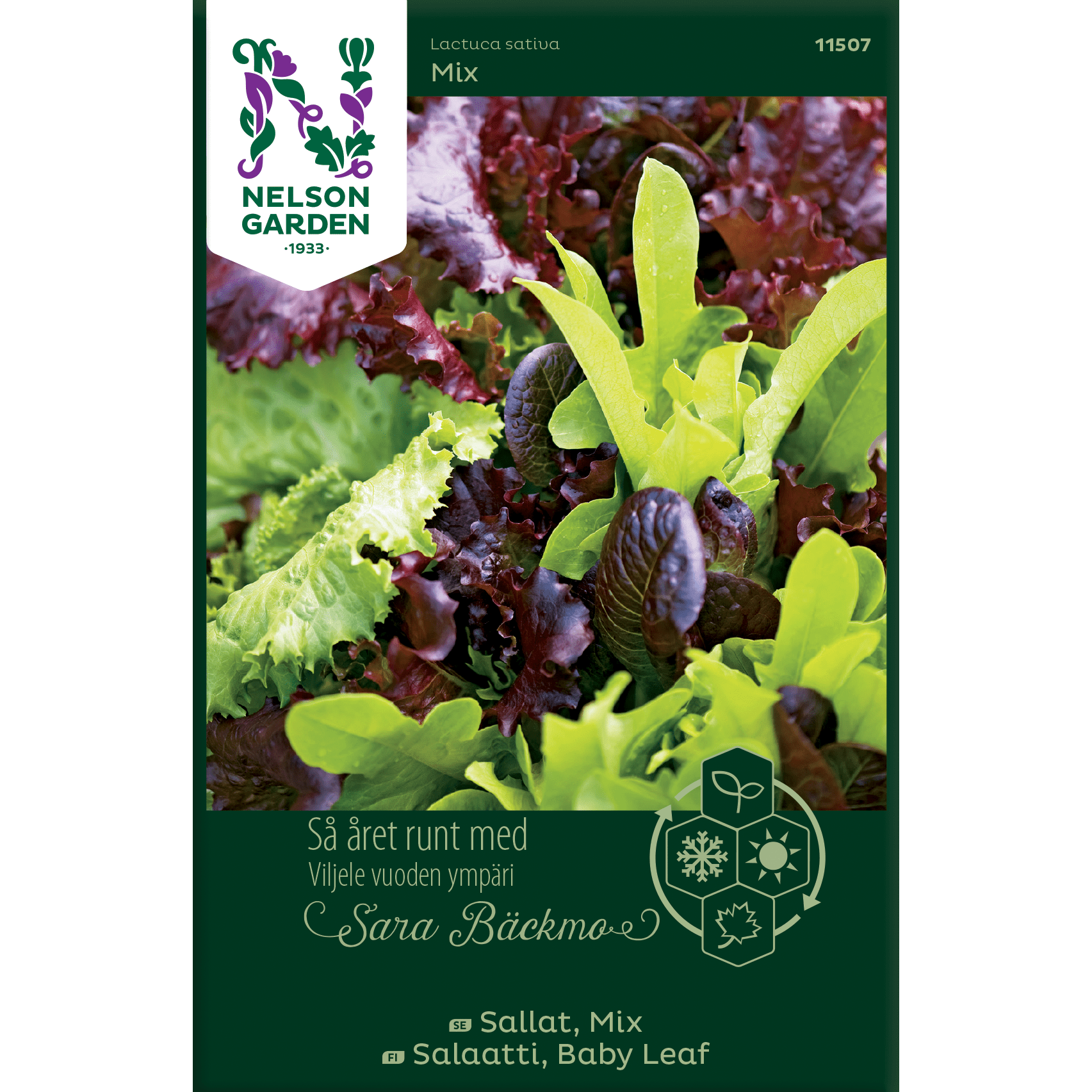 Mix av ’Amerikanischer Brauner’, ’Salad Bowl’, ’Red Salad Bowl’, ’Lollo rossa’, ’Australische Gele’ och ’Rouge Grenobloise’. Gror bäst i sval jord, växer fint i kyla. Rikligt med vatten ger godare blad. Skydda med fiberduk på hösten för lång skörd.