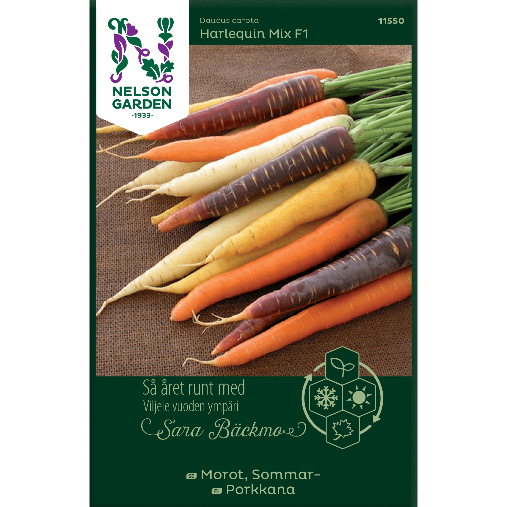 Så året runt är ett samarbete mellan Nelson Garden och Sara Bäckmo på Skillnadens Trädgård. Det är ett noga utvalt sortiment som passar att så alla månader på året. Det är även lite mer frö per påse, vilket passar den odlingsintresserade.