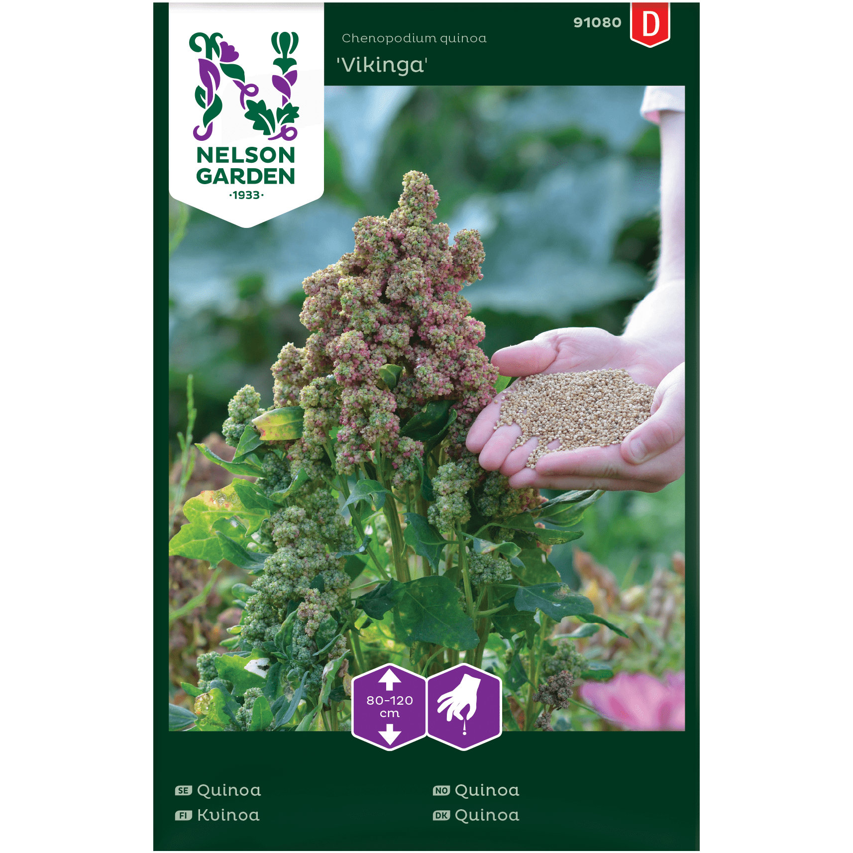 En glutenfri och näringsrik ört med ursprung i Sydamerika. Lättodlad men något frostkänslig just vid blomningen. Torktålig. Skörda då fröerna ser välutvecklade ut, låt torka och skaka ut fröerna. Denna sort har en låg saponinhalt. Skölj fröerna noga innan kokning och användning i t.ex. sallader och biffar. Trivs bäst i en näringsrik, lucker, fuktighetshållande och väldränerad jord. Vattna vid torka.