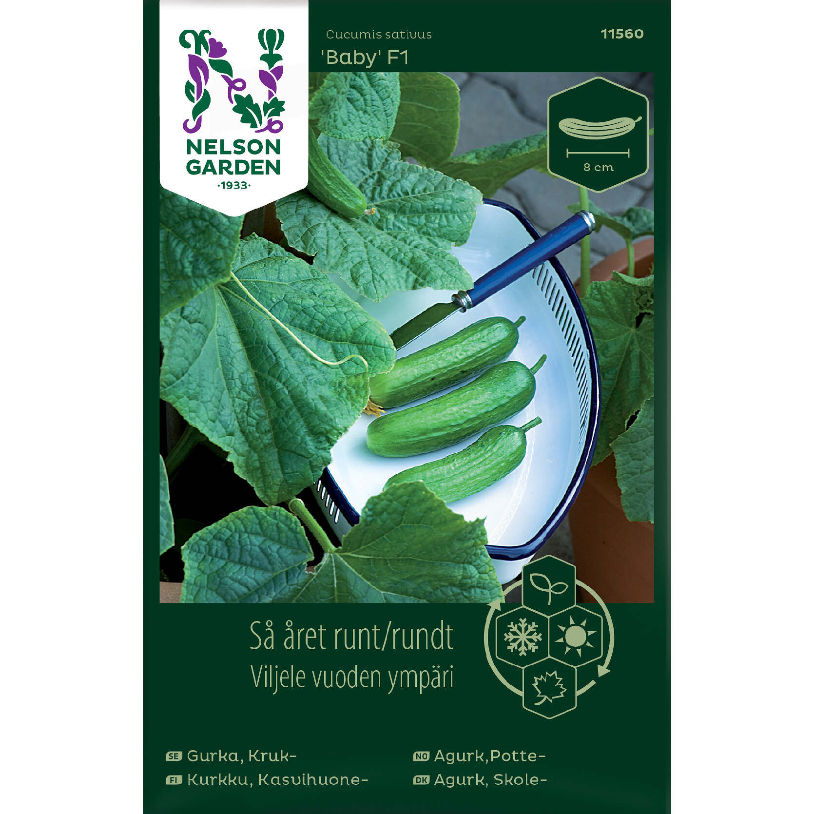 Så året runt är ett samarbete mellan Nelson Garden och Sara Bäckmo på Skillnadens Trädgård. Det är ett noga utvalt sortiment som passar att så alla månader på året. Det är även lite mer frö per påse, vilket passar den odlingsintresserade.