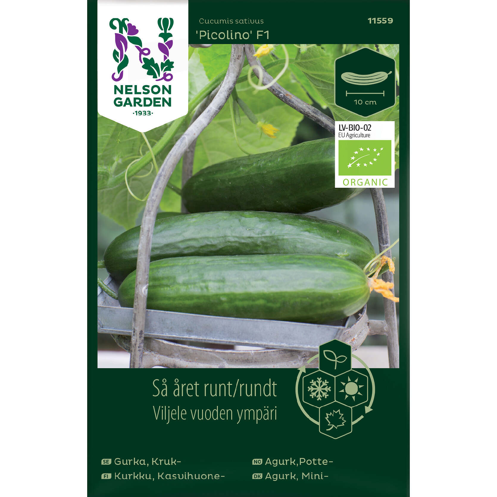 Liten gurka med slätt skal. Får endast honblommor. Börja skörda ca 3mån efter sådd. Förodla inomhus, med växtbelysning, 1 frö/kruka med 2/3 gödslad jord och 1/3 såjord överst. Låt gro i 25°C. Ställ sedan i rumstemp. Vid omplantering sätt plantan på samma djup som i såkrukan, ej djupare. Behöver stöd.