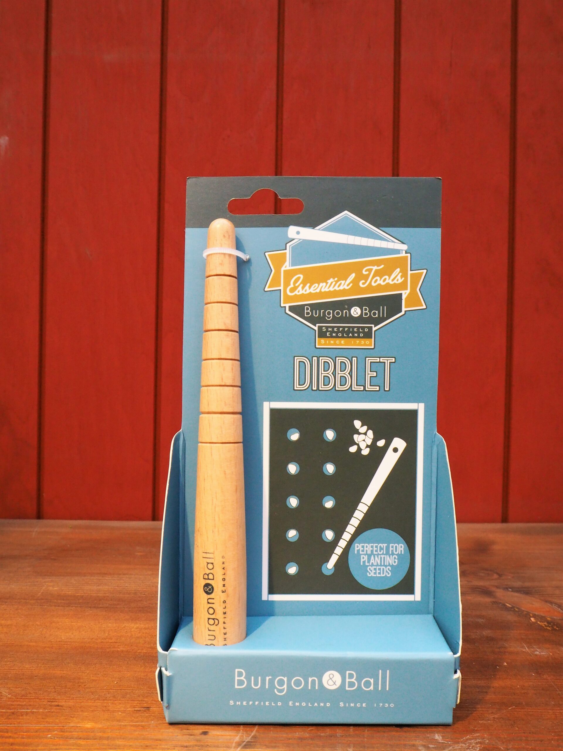 Dibblet gjord i bok från välrenommerade engelska trädgårdsföretaget Burgon & Ball. Förmarkerad med 8 olika sådjup med 1 cm mellan varje nivå. Det går snabbare och blir mer exakt än att använda fingret. Ideal för att så frön eller göra hål vid omskolning.