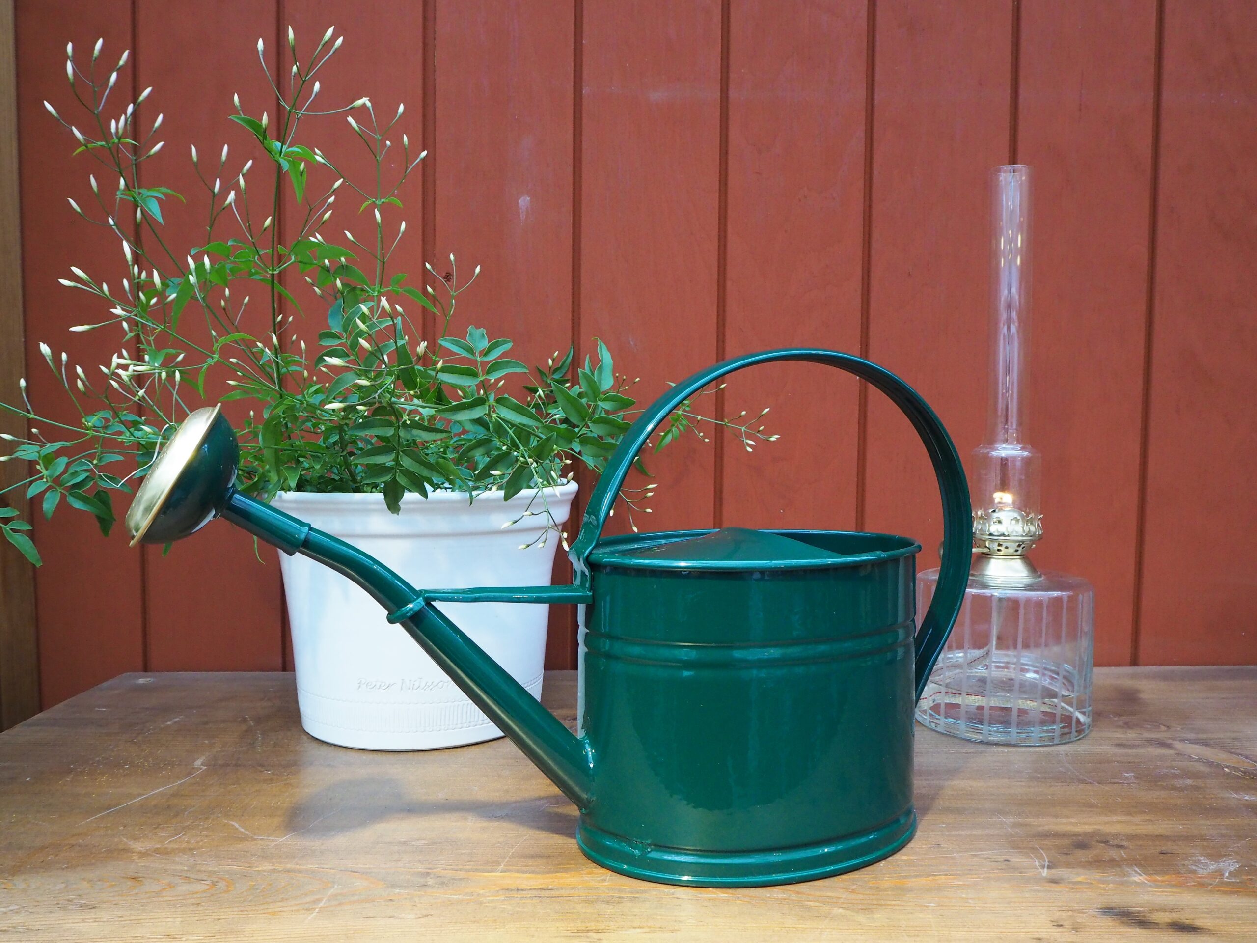 Klassisk vattenkanna i emaljerad zink. Avtagbar stril i mässing.