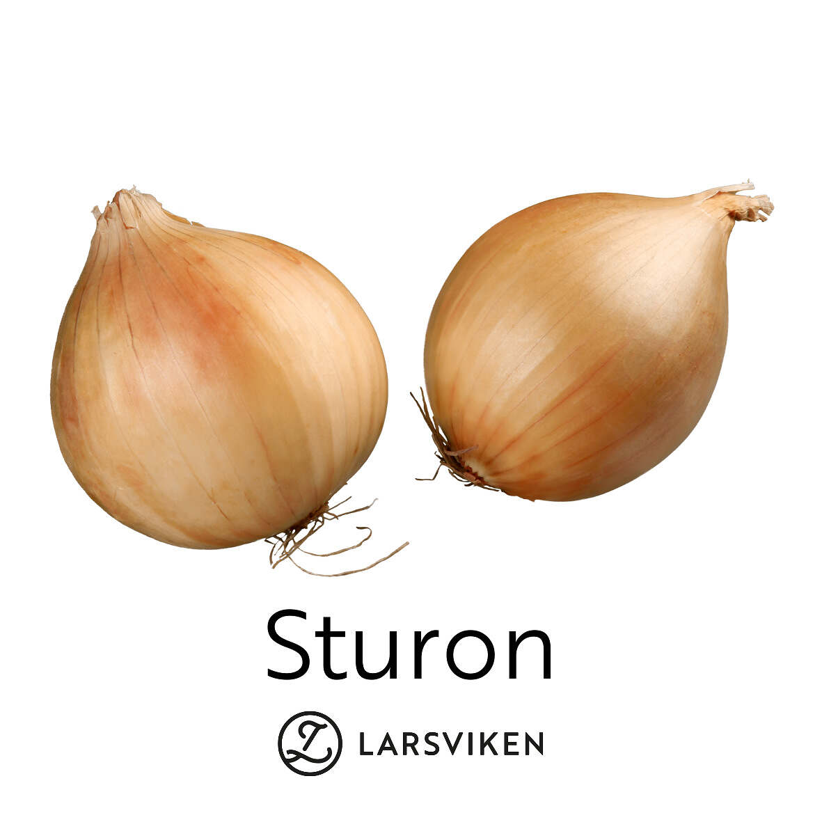 En gammaldags sort som ger medelstora runda lökar. Sturon passar både att äta som färsk tidigt på säsongen eller att lagra in när den torkat. Skalet är dekorativt halmgult och köttet vitt och saftigt. Genom att plantera på hösten får man tidigare skörd.