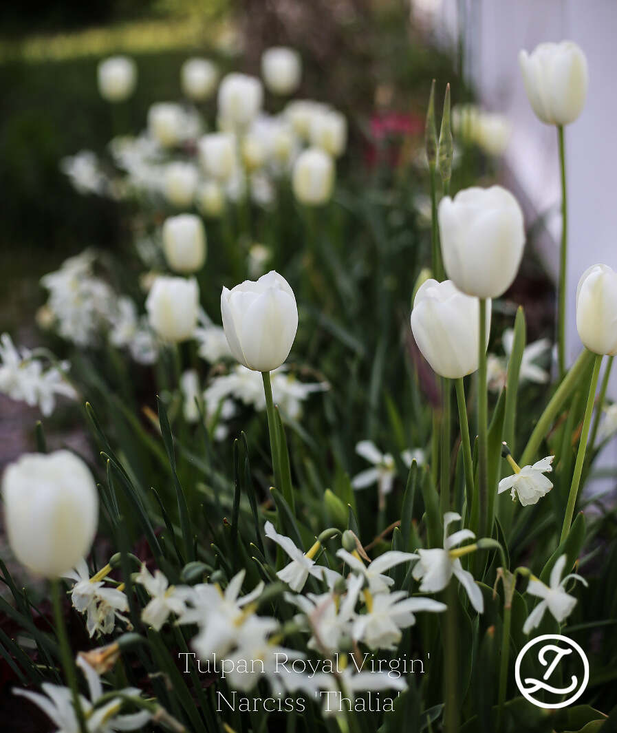 I mixen ingår 7 stycken tulpaner ’Ronaldo’, 7 stycken tulpaner ’Royal Virgin’, 7 stycken narcisser ’Thalia’ samt 10 stycken vita klockhyacinter. Alla lökar är ekologiskt odlade.