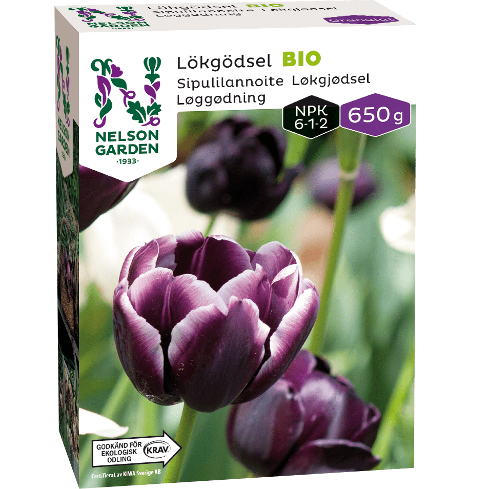Vegetabiliskt gödsel för lök- och knölväxter. Godkänd för ekologisk odling. Passar lika bra till blomsterlök som till sättlök. Sammansättningen är NPK 6-1-2. Går bra att använda både vid plantering eller som tilläggsgödsling under odlingssäsongen.
