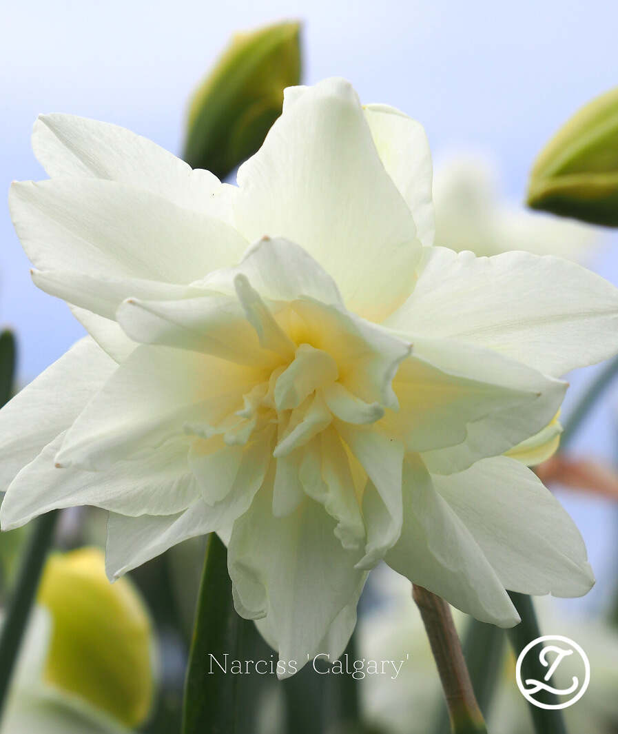 Som ett fluffigt sommarmoln! En dubbel narciss med krämvita kronblad och en underbar doft. Blommorna är fyllda med skira, krusade kalkblad som i knopp är ljust crèmefärgade för att sedan gå över i vitt. En underbar blomma i såväl rabatt som blomsterarrangemang. Varje lök sätter flera blomsterstänglar.