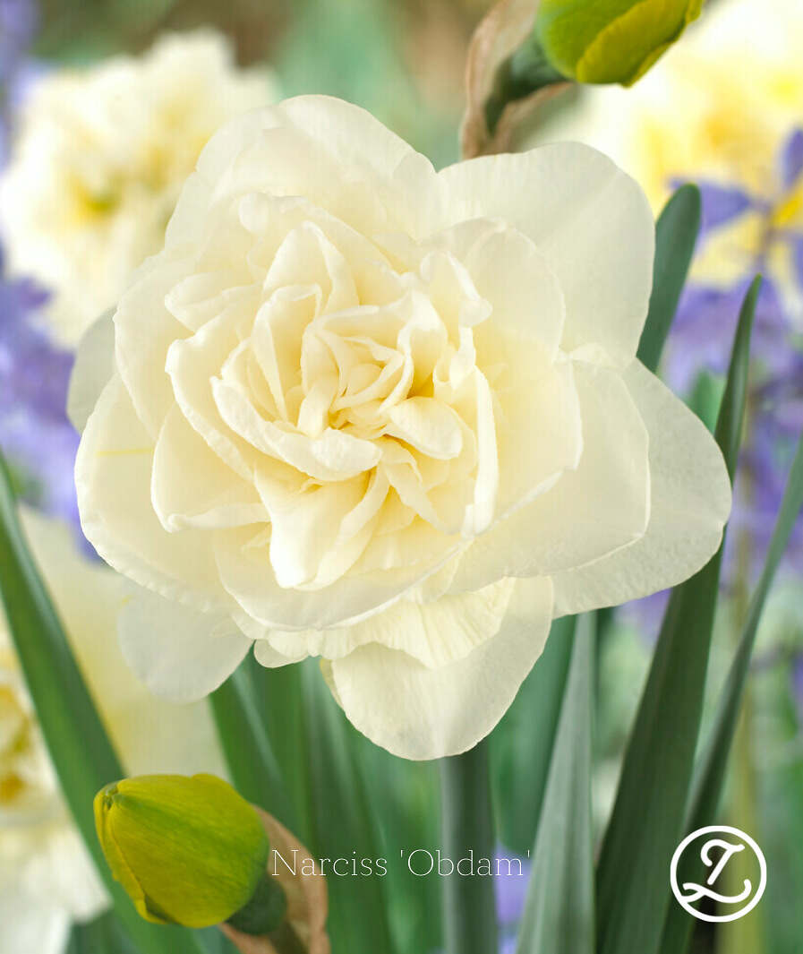 Som en gräddvit bakelse stoltserar ‘Obdam’ i planteringen. En vacker dubbel narciss som passar såväl i trädgården som i blomsterarrangemanget.