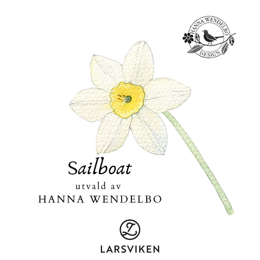 Som ett segel på en båt som ger sig ut på en sommarseglats, likadant fäller Narcissen ’Sailboat’ ut sina kronblad. Dess ljusgula trumpet omsluts av crèmefärgade kalkblad. Doften är söt och finstämd. En söt och liten narciss med ca 6 blommor per stängel, varje lök skjuter flera stänglar. Sailboat tillhör gruppen Jonkvill-narcisser.