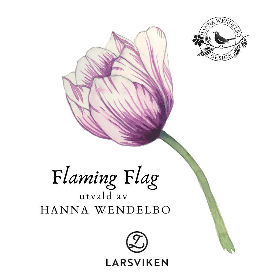 Fantastisk tulpan där kronblad och det silvergröna bladverket vackert kontrasterar varandra. ’Flaming Flags’ kronblad har färgen av vitt och olika lila toner som går från syren till lavendel. En underbar tulpan!
