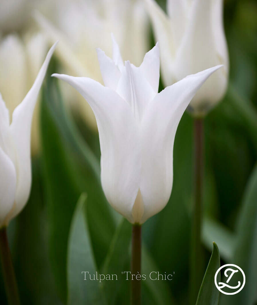 Varje stjälk avslutas med en stor skir blomma i krispigaste vit. Kan det bli mycket bättre? Kronbladen smalnar av mot toppen och bildar på så sätt en krona, även kallade liljeblommande tulpaner.