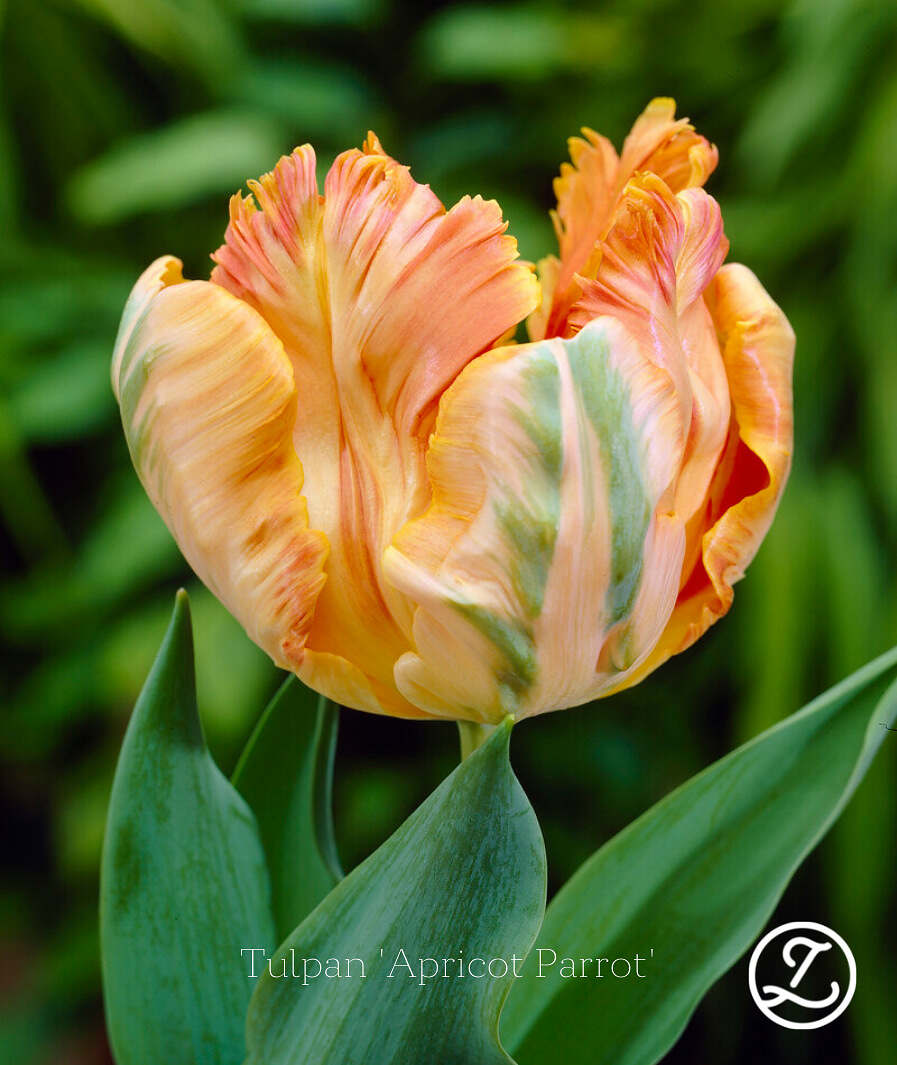 Älskad papegojtulpan som vunnit flera priser. Blommorna får en underbar aprikos färg med inslag av rosa, vitt och strimmor av grönt. Kronbladen får de karaktäristiska fjäderformade och lite fransiga kanter. Apricot Parrot är en skönhet såväl i knopp som fullt utslagen, som ett konstverk som förändras över tid. Doften är mild och därför fungerar Apricot Parrot även i blomsterarrangemang. Plantera gärna med Thalia, Petrel eller Royal Virgin.